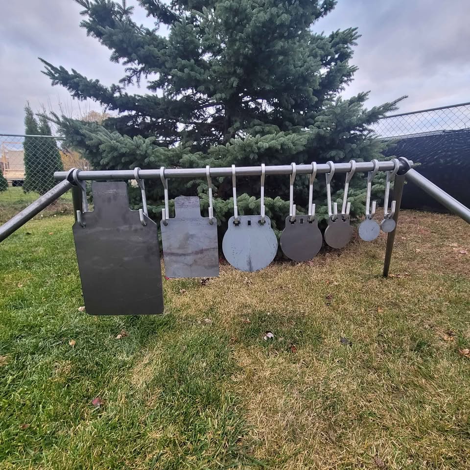 Double Hole Gong Set. Manufactured in the USA, from USA Made high quality AR500 steel plate. Precision laser cut. Targets are in Raw Steel form.